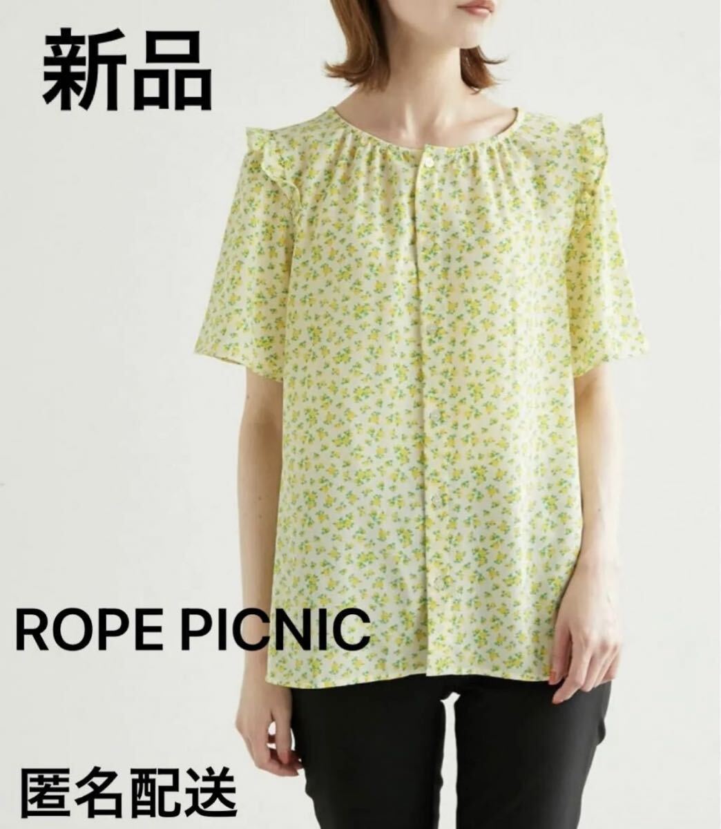 - 【新品・未開封】ロペピクニックROPE PICNICアデリアレトロ柄ブラウス38半袖イエロー花柄