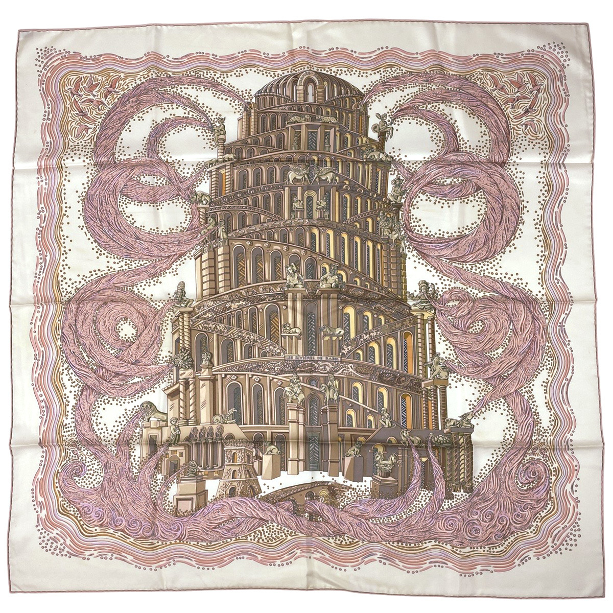 - エルメス HERMES カレ90 LES RIVIERES DE BABEL バベルの川 スカーフ シルク ホワイト マルチカラー レディース 【中古】