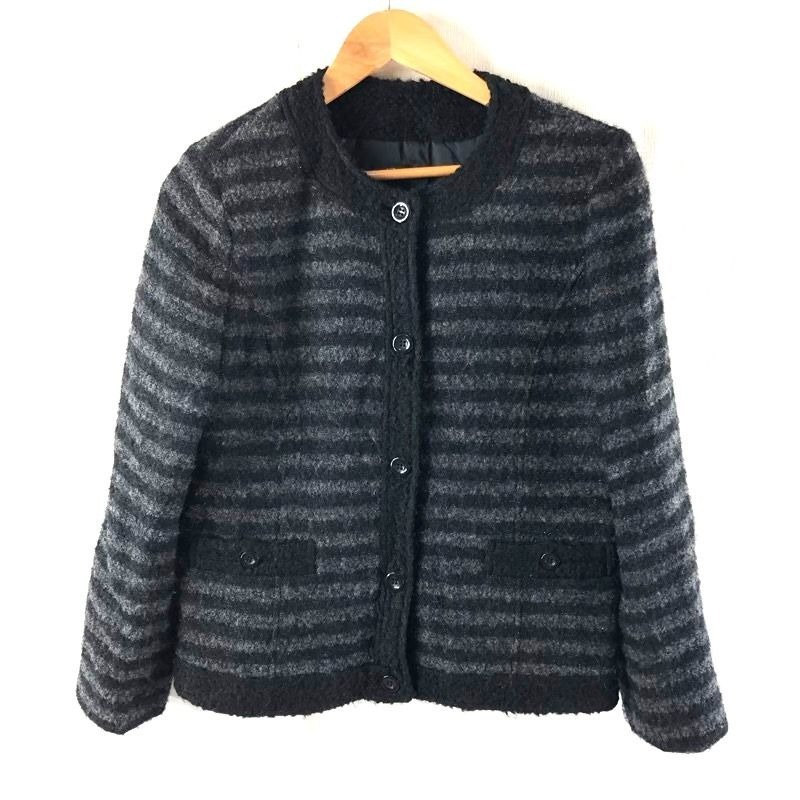 - 里麻 ジャケット ストライプ ラメ入り ボタン 裏地付き 長袖 黒系 9Rサイズ 2025081400042