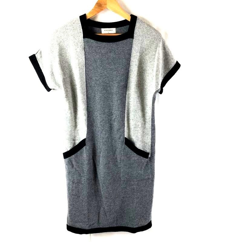 > ANCORA COLLECTION ワンピース ニット 半袖 サイドポケット グレー系 Sサイズ 2025080800157