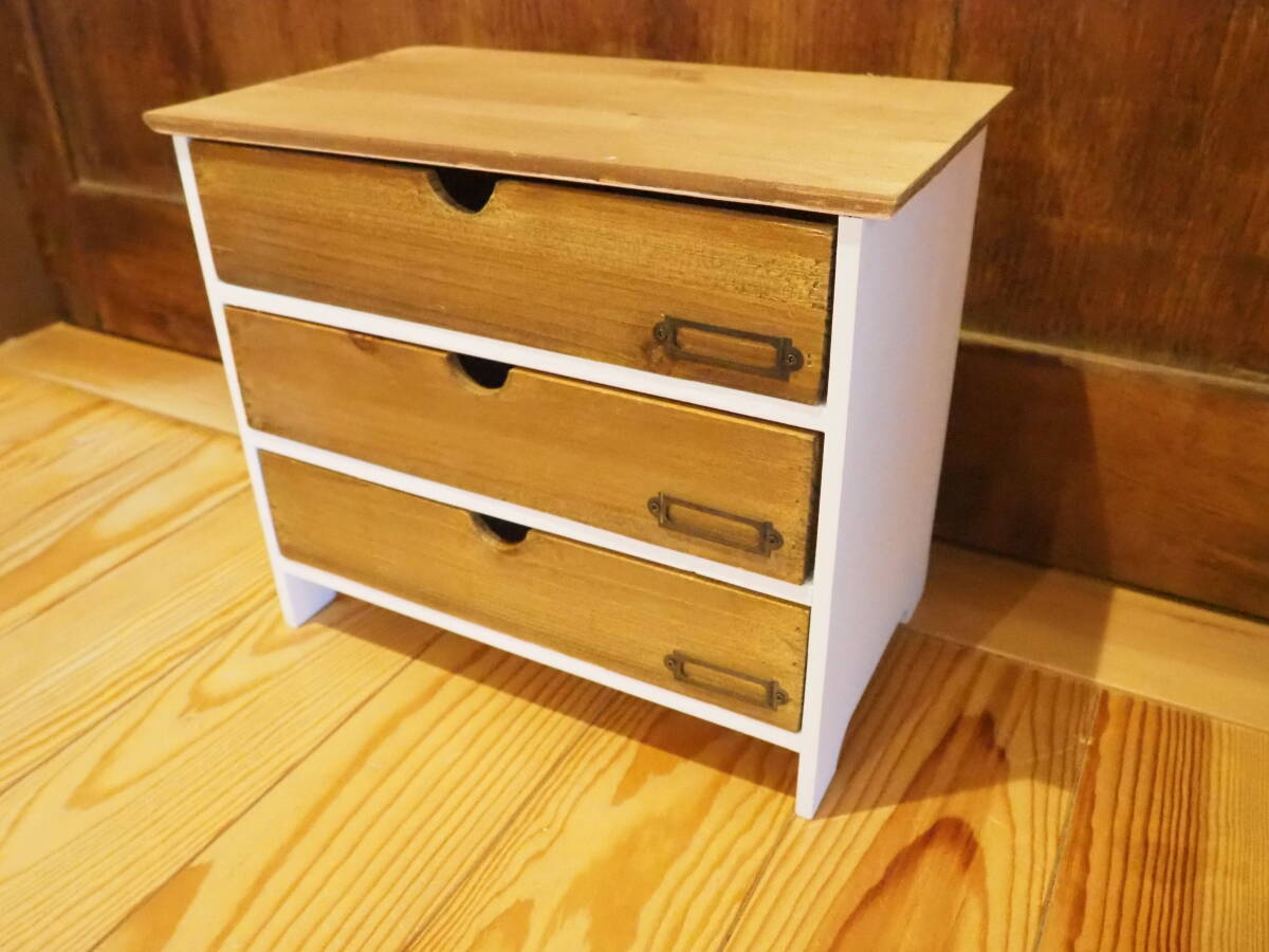 - 【木製3段引出し収納】デッドストック箪笥インテリア家具文具ナチュラル素材小物入れコレクションケース本棚書棚キッチンリビングデスク机