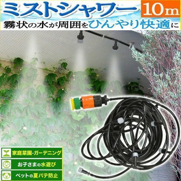 - ミストシャワー 10m 散水機 屋外用 熱中症 対策 スプリンクラー 散水ホース 散水ノズル 業務用 農業用 庭 芝生 ガーデニング 散水 家庭菜園