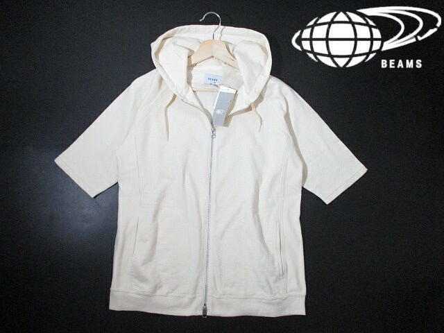 - 新品 未使用■ 即決! ビームス 半袖パーカ スウェット ジップアップ Wジップ 白 BEAMS Mサイズ フーディー ホワイト