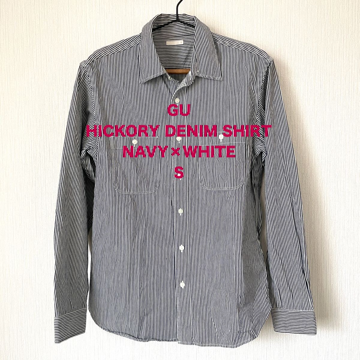 - 【GU】ジーユー ヒッコリーデニムシャツ ストライプ 紺色×白 ネイビー×ホワイト S メンズ 長袖 カジュアル ワーク ベーシック 匿名配送
