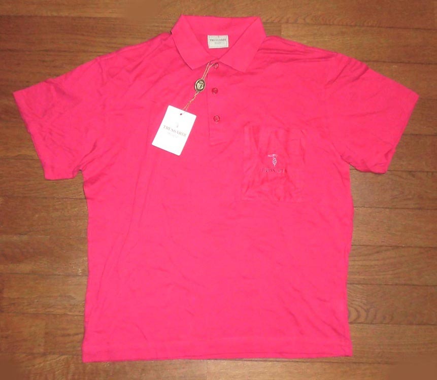 - TRUSSARDI maglie トラサルディ ポロシャツ 半袖 コットン 鹿の子 胸ポケ付 刺繍ロゴマーク イタリア製 90s 当時物 RED M 紙タグ付未使用品