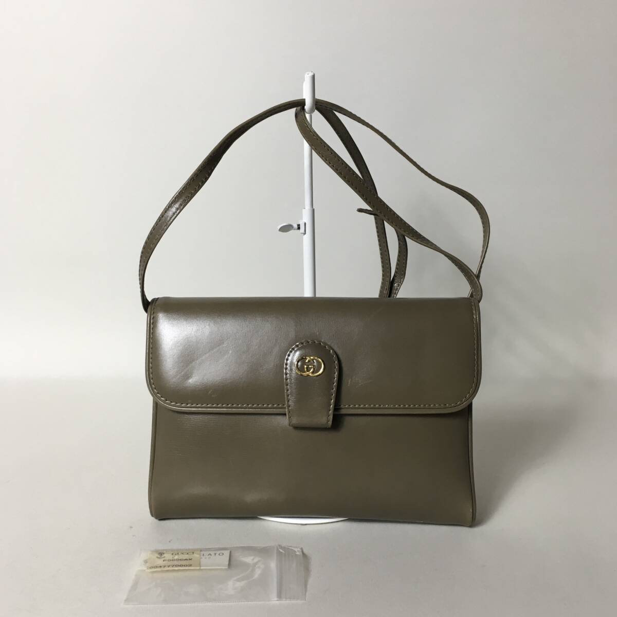 - 78B213|グッチ ショルダーバッグ レザー カーキベージュ
