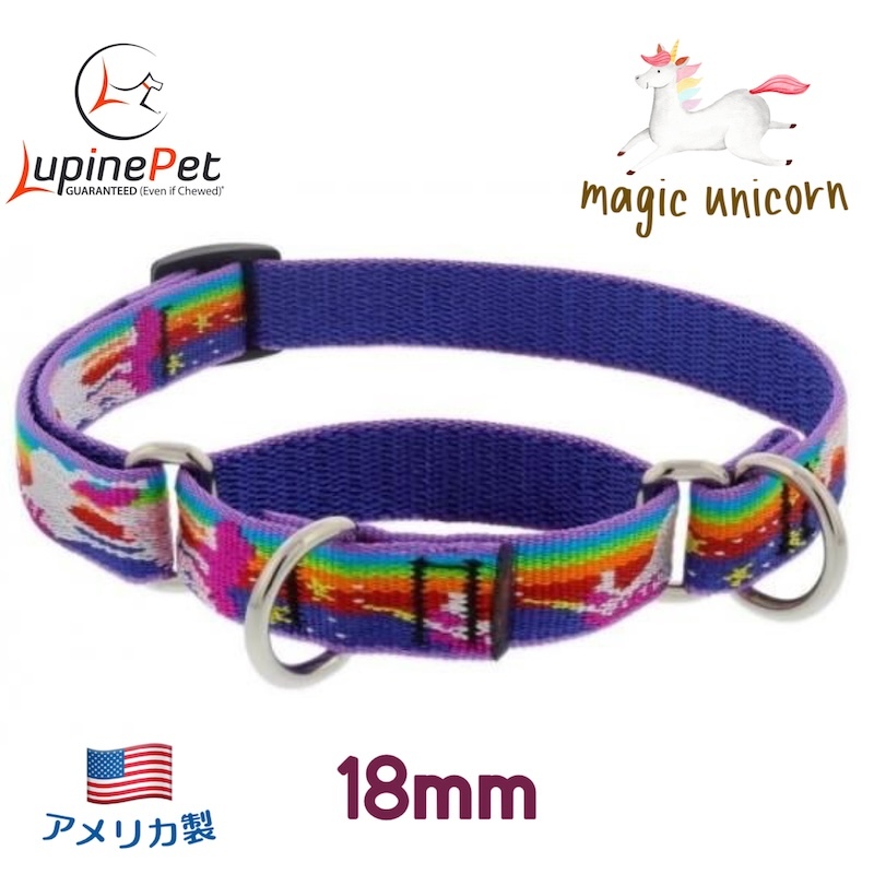 > ハーフチョークカラー・Mサイズ・18mm幅マジックユニコーン柄34-50cm LUPINEルパイン アメリカ製 軽量丈夫 製造終了レア