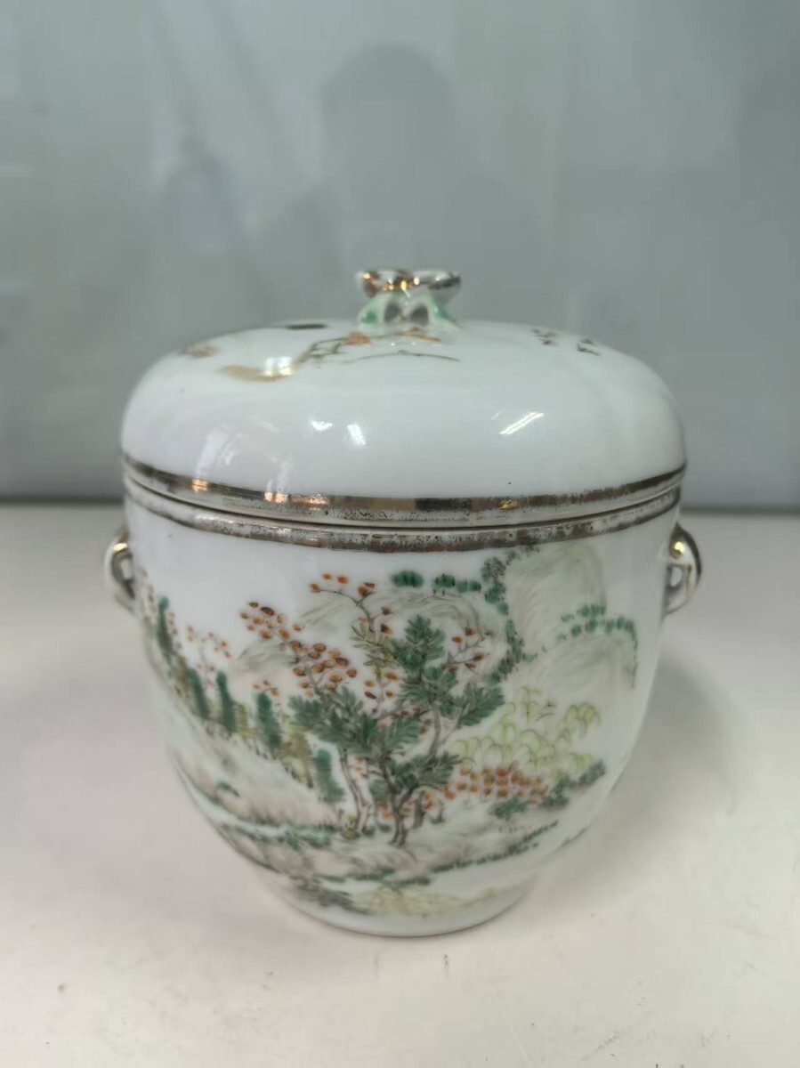> 【萬藏】中国 清代 粉彩 茶入 中国美術 色絵 茶器 茶道具 唐物 蓋物 金彩 茶道具 高さ 14cm