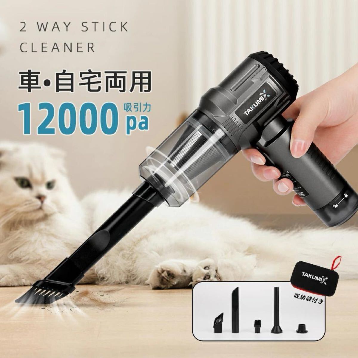 - ハンディクリーナー 車用掃除機 ミニ掃除機 コードレス 12000pa 強力吸引