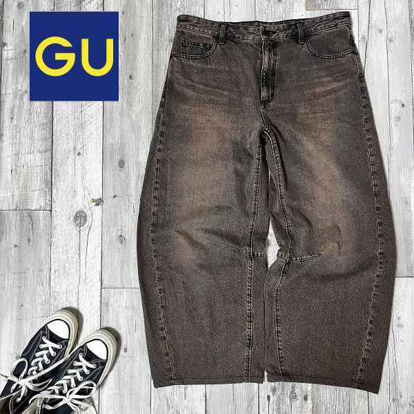 > ☆GU ジーユー☆USED加工 バレルレック ジーンズ ワイドデニム ウィメンズ size(XXL) S2515