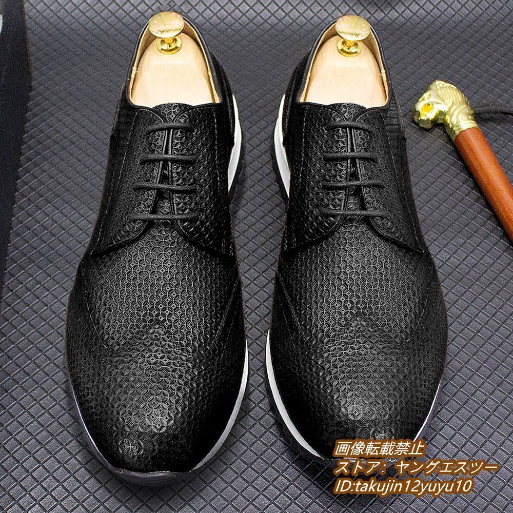 > 極美品*定価9万 スニーカー メンズ 本革 レザーシューズ 職人手作り ビジネスシューズ 牛革 ローファー スリッポン 押し柄 ブラック 28.0cm