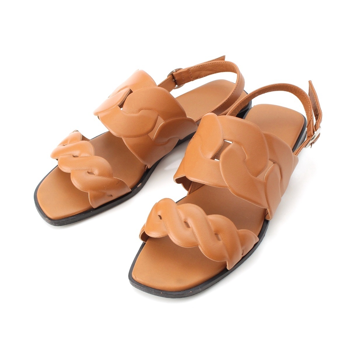 - エルメス グレース レザー フラット サンダル ゴールド 37【中古】