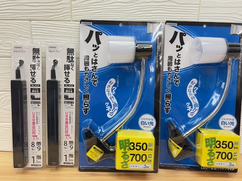 - A443 YAZAWA ヤザワ 4個 3W LED一体型 ポリカ フレキシブルクリップライト black&USBポート付 差込口フリータップ ブラック 8~9個口 1.5m