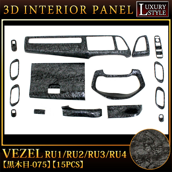 - ヴェゼル RU 系 インテリア パネル ドレスアップ ブラック 黒木目 FJ4493