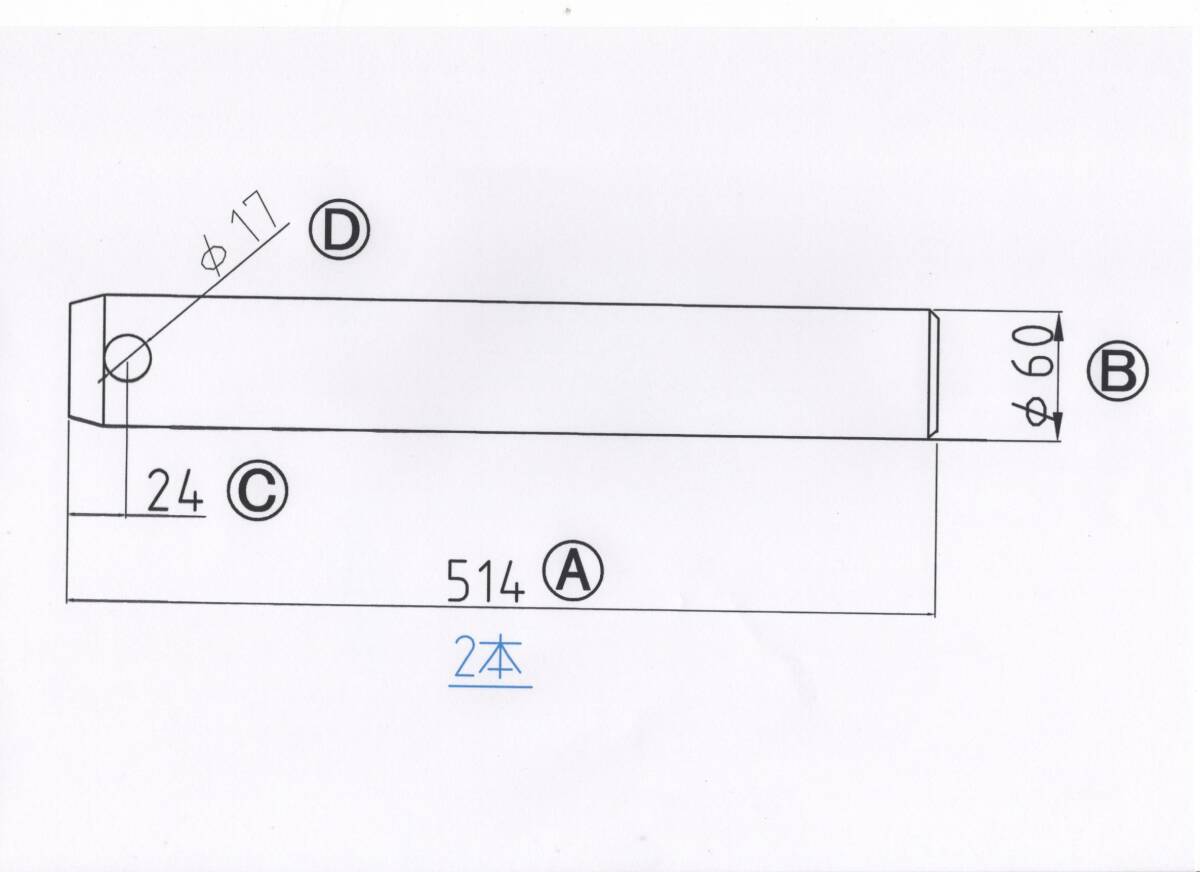 - NO.2109 Φ60用 全長514mm バケットピン 2本1セット