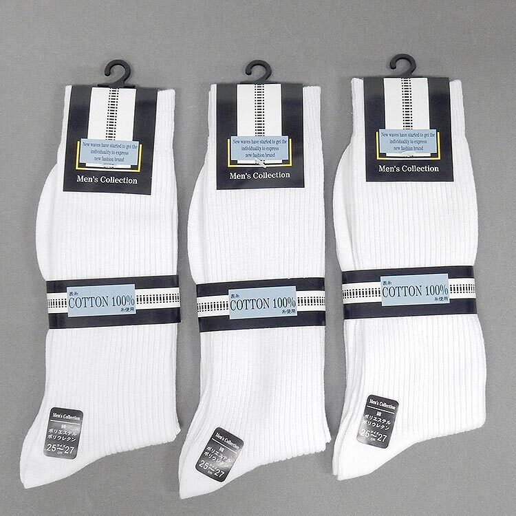 - 3足組 白靴下 ホワイトソックス 綿混 紳士靴下 25-27cm メンズソックス メール便送料無料 sox-W03