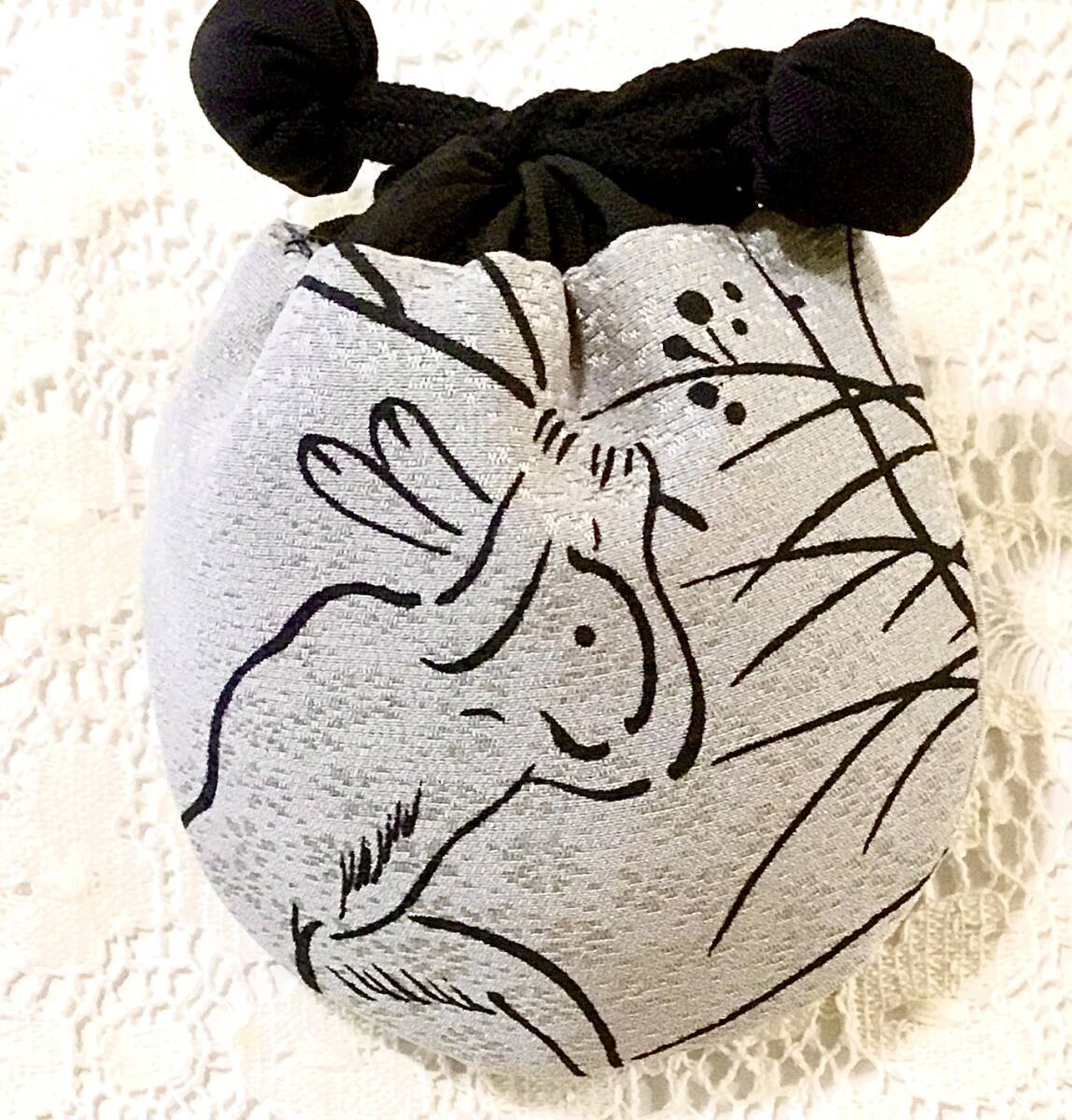 - 古布870ソフト小袋・絹(鳥獣戯画・兎・僅か柄)時代着物地