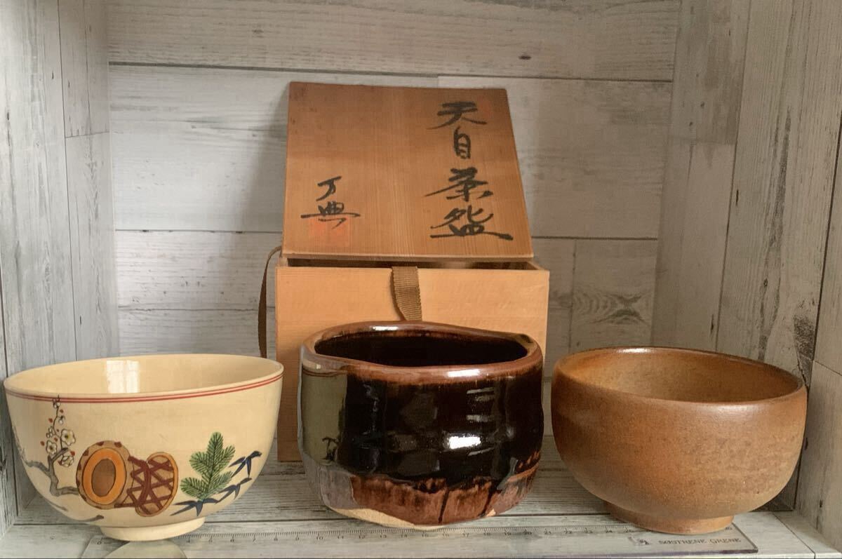 - 抹茶碗 3点セット 天目茶碗 戸松万典 備前焼 信楽焼 美濃焼 京焼 色絵 陶器 茶道具 茶器 茶碗 うつわ 茶道 抹茶 和食器 木箱
