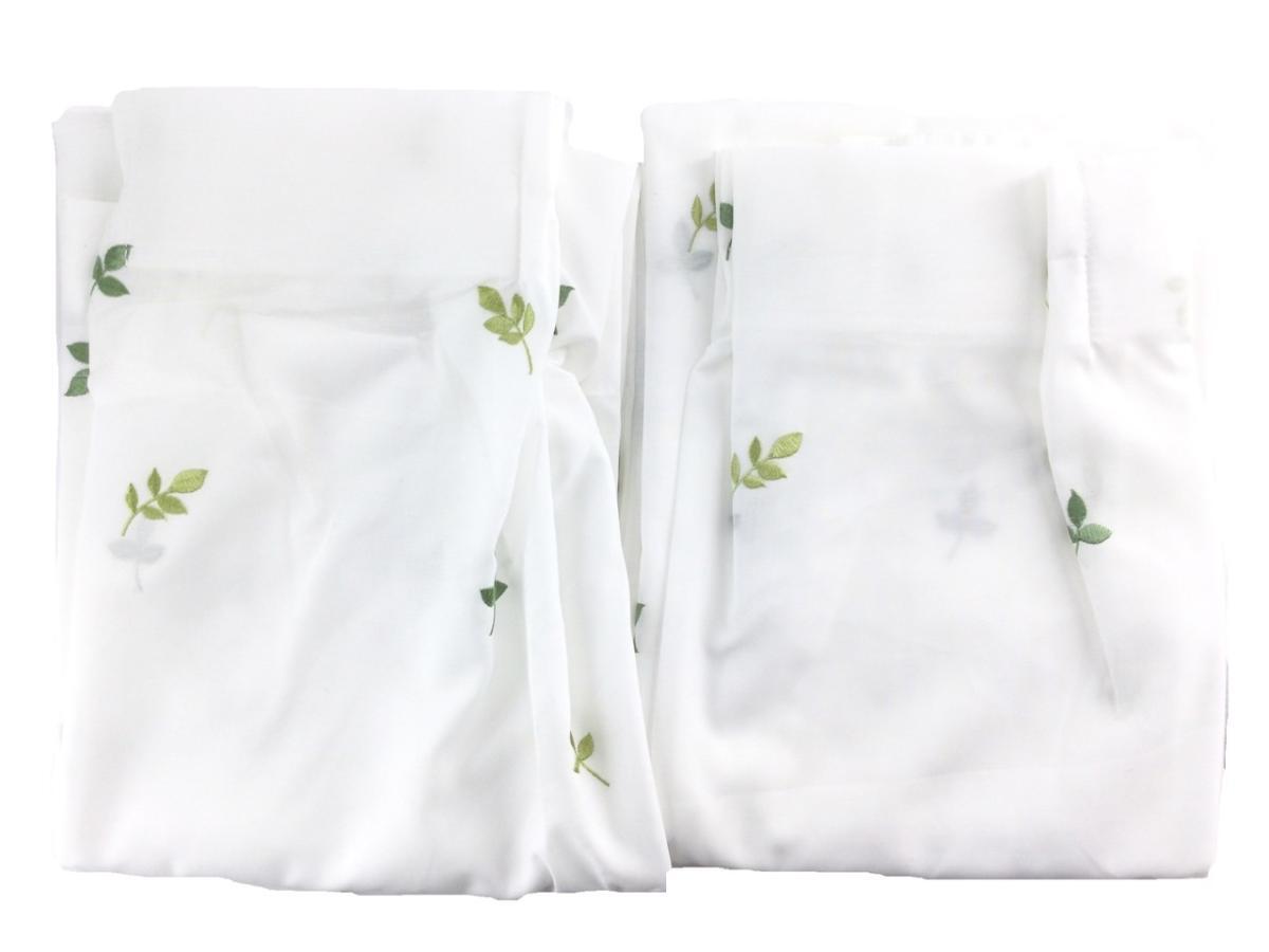 - レースカーテン 遮像 リーフ刺繍 2枚 幅100x133cm 葉柄 ホワイト