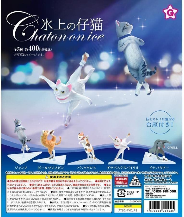 - 新品★エール 氷上の仔猫 全5種フルセット カプセルトイ フィギュアスケート 猫 銀盤 ガチャ フルコンプ
