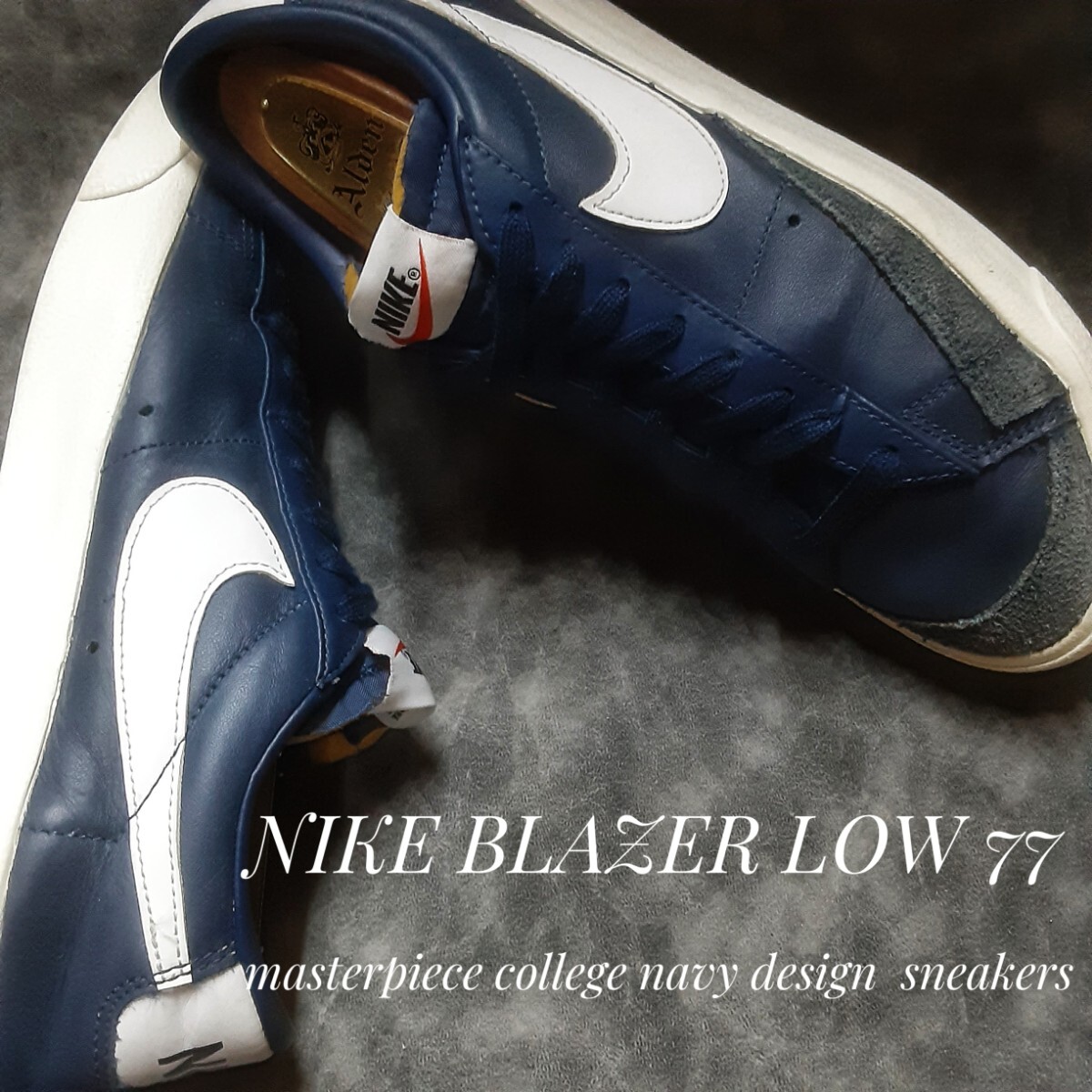 - 最値!定13200円!希少20年製!カレッジネイビー!コンビカウレザーファブリック!ナイキ ブレザー ロー 77高級スニーカー!紺色白 27cm