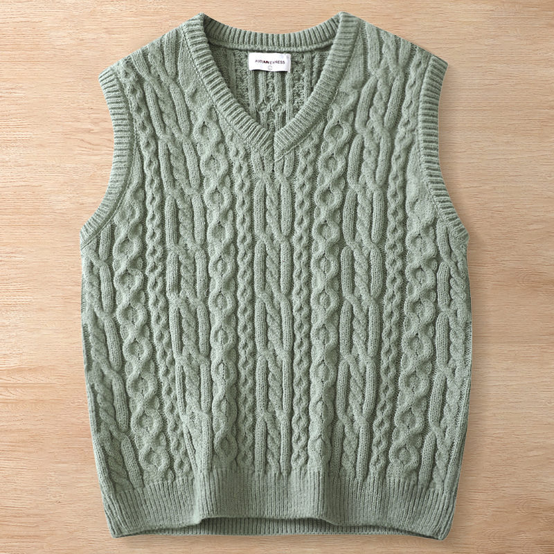 - Y6349-2XL グリーン 新品 ウール混 ベスト Vネック ケーブル編みセーター フィッシャーマン 柔らか 暖かさ 秋冬 セーター メンズ トップス