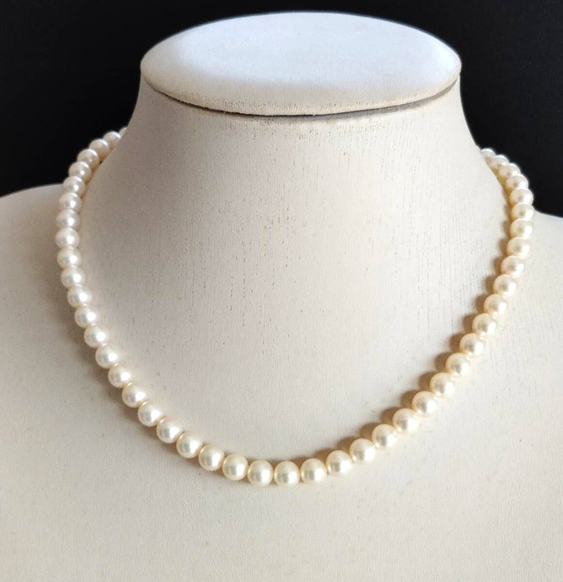 - 真珠ネックレス・淡水真珠ネックレス・若干絹色帯・長さ:44 cm・ホワイト系・直径 6.6 mm