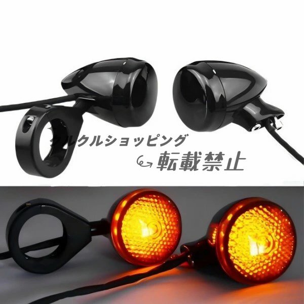 - ハーレーダビッドソン カフェレーサー用 LED バイクフロントウィンカーインジケーター 41mm クリップオン自転車テールライト 2組