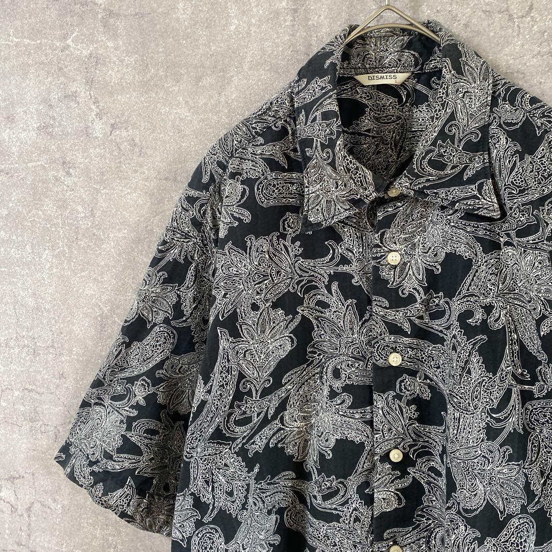 - 花柄ボタニカル柄シャツ 半袖 黒白 モノトーン ゆったりLサイズメンズ