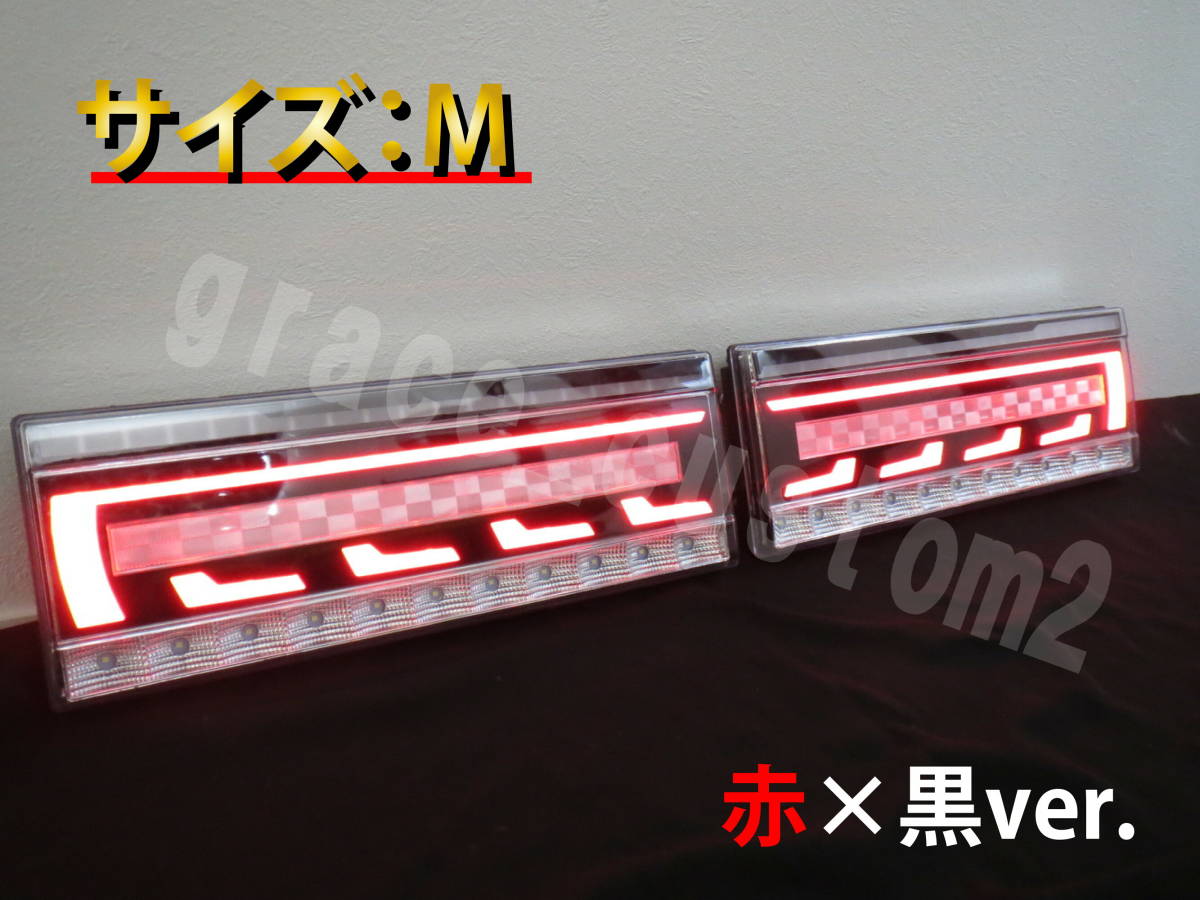 トラック 24V 3Dアクリル加工 赤×黒ver. LED テールランプ シーケンシャル テールライト 流れるウインカー 左右セット☆ 【Mサイズ】拍卖