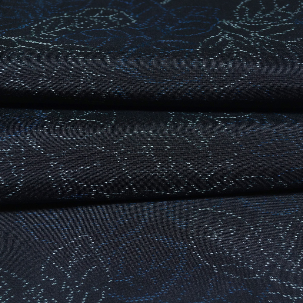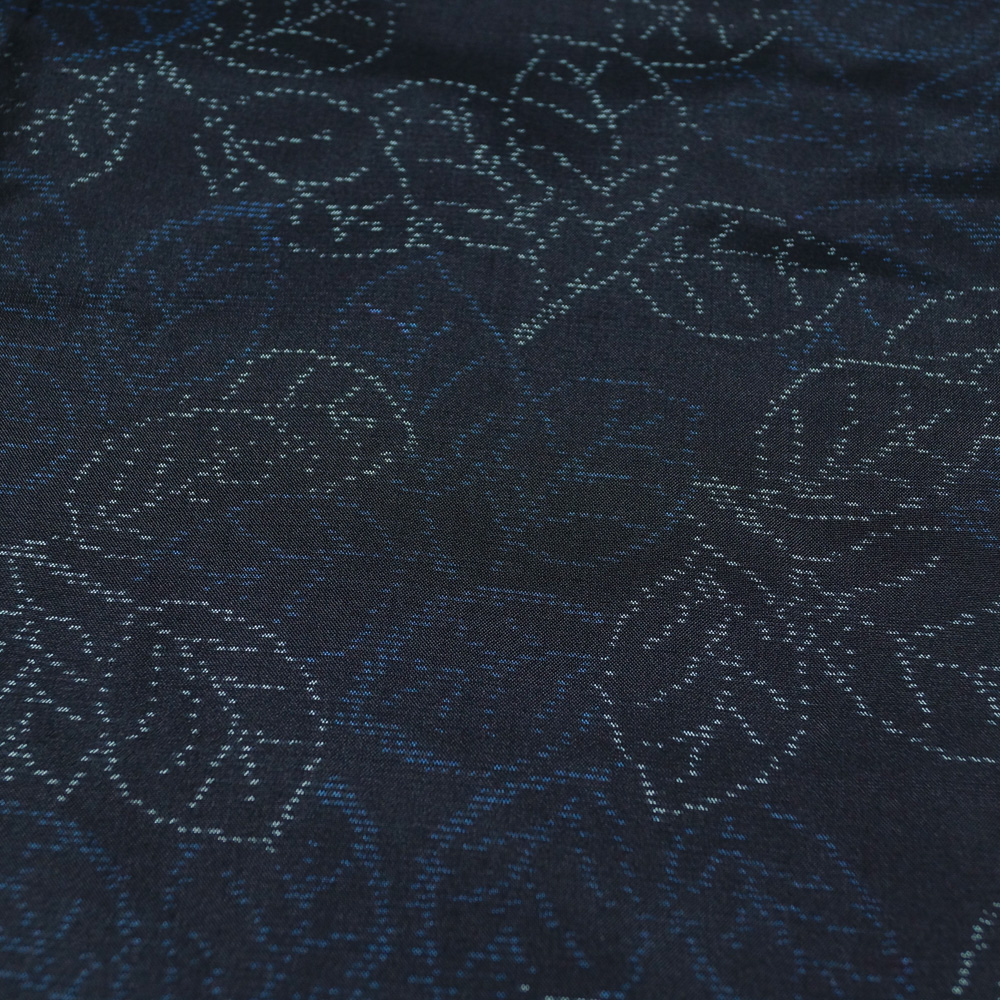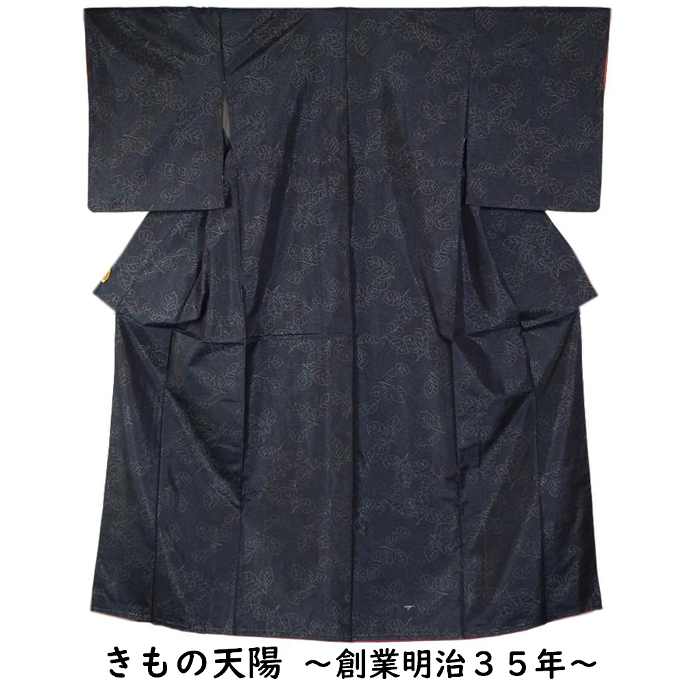 - 大島紬 未使用品 葉っぱ模様 バチ衿 藍染 緯双 Lサイズ 大島 紬 中古 女性和服 着物 紬 リサイクル着物 リサイクル紬 正絹 天陽