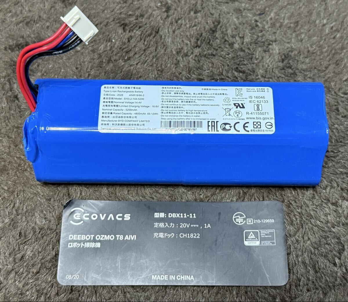- まだまだしっかり使える ECOVACS DEEBOT OZMO T8 AIVI ロボット掃除機用 純正バッテリー DBX11-11 S10-LI-144-5200 BYD製 14.4V 5200mAh