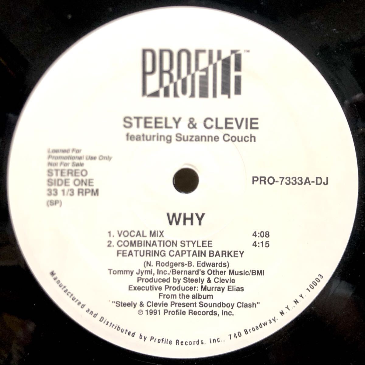 > レア 当時物 プロモ 倉庫出 1991 Steely & Clevie Feat Suzanne Couch / Why Original Promo US 12 Profile PRO-7333A-DJ 絶版