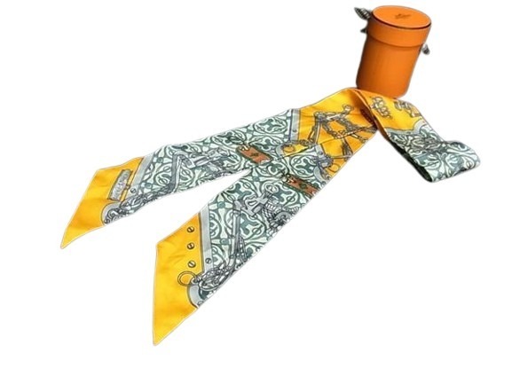 > エルメス スカーフ ツイリー MORS ET GOURMETTES REMIX 【馬銜と鎖】 シルク100% -【本物保証】