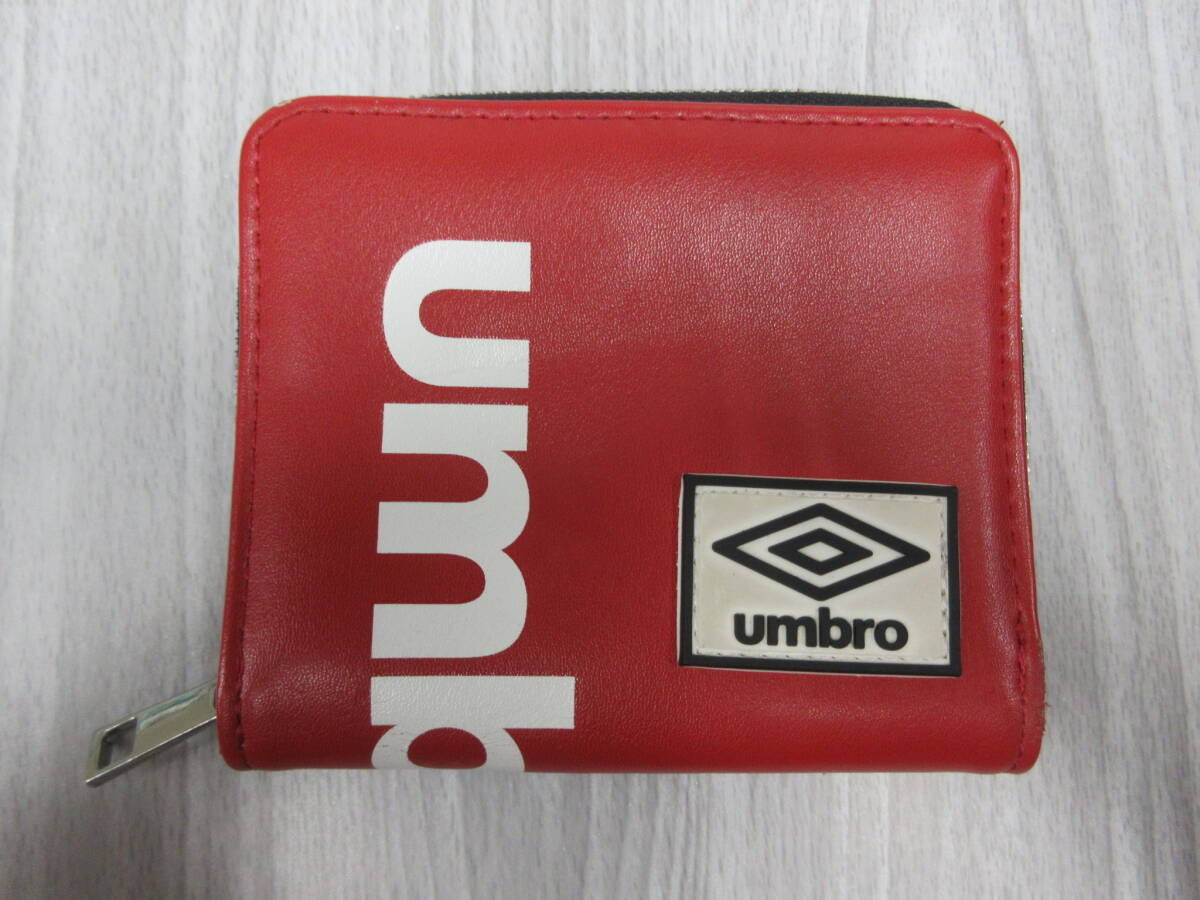- ( え-G1-8012 )umbro アンブロ 二つ折り財布 ラウンドファスナー お札入れ カード入れ 小銭入れ コインケース レッド 赤 中古