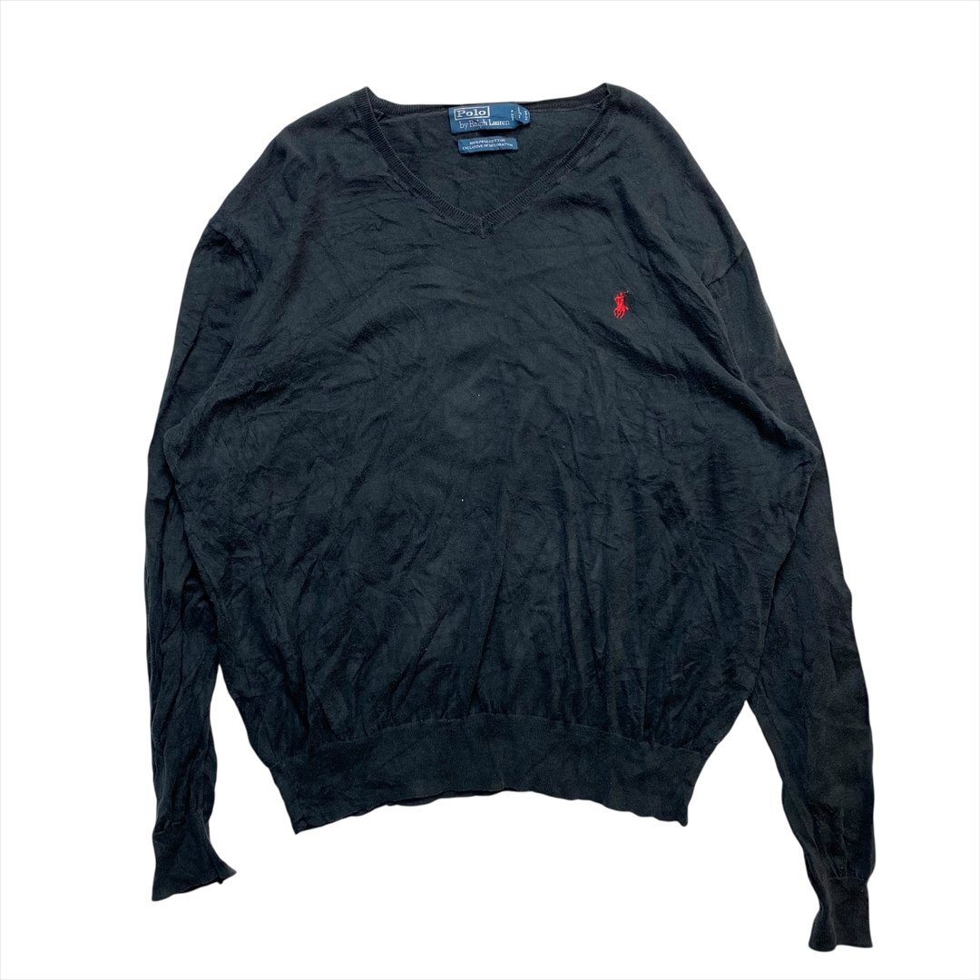 - Vintage 90s POLO Ralph Lauren ポロ ラルフローレン ワンポイント 刺繍 ロゴ ニット セーター メンズ XL ブラック 古着 ヴィンテージ