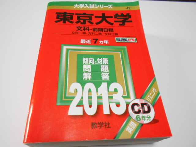 - ★赤本 『東京大学 文科-前期日程 文一・文二・文三 最近7ヵ年 2013』 教学社 CD6年分付き