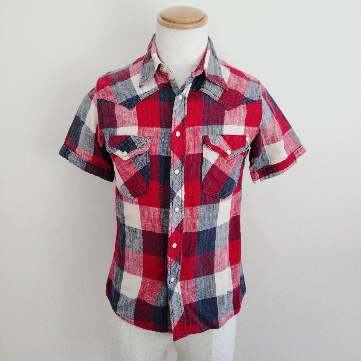 > 0829/S/H.R.MARKET メンズ 半袖シャツ ブラウス ネルシャツ チェック柄 レッド