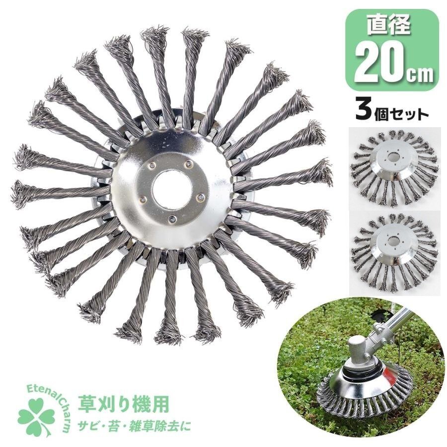 - 【送料無料】草刈り機 ブラシ カッター 3個セット 草削り 草刈機 芝刈り機 スチール ワイヤー 交換 汎用 アスファルト 苔 雑草 除去