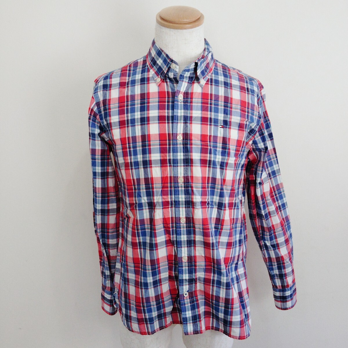 > 0829/M/TOMMYHILFIGER メンズ 長袖シャツ ブラウス ボタンダウン チェック柄 ブルー レッド