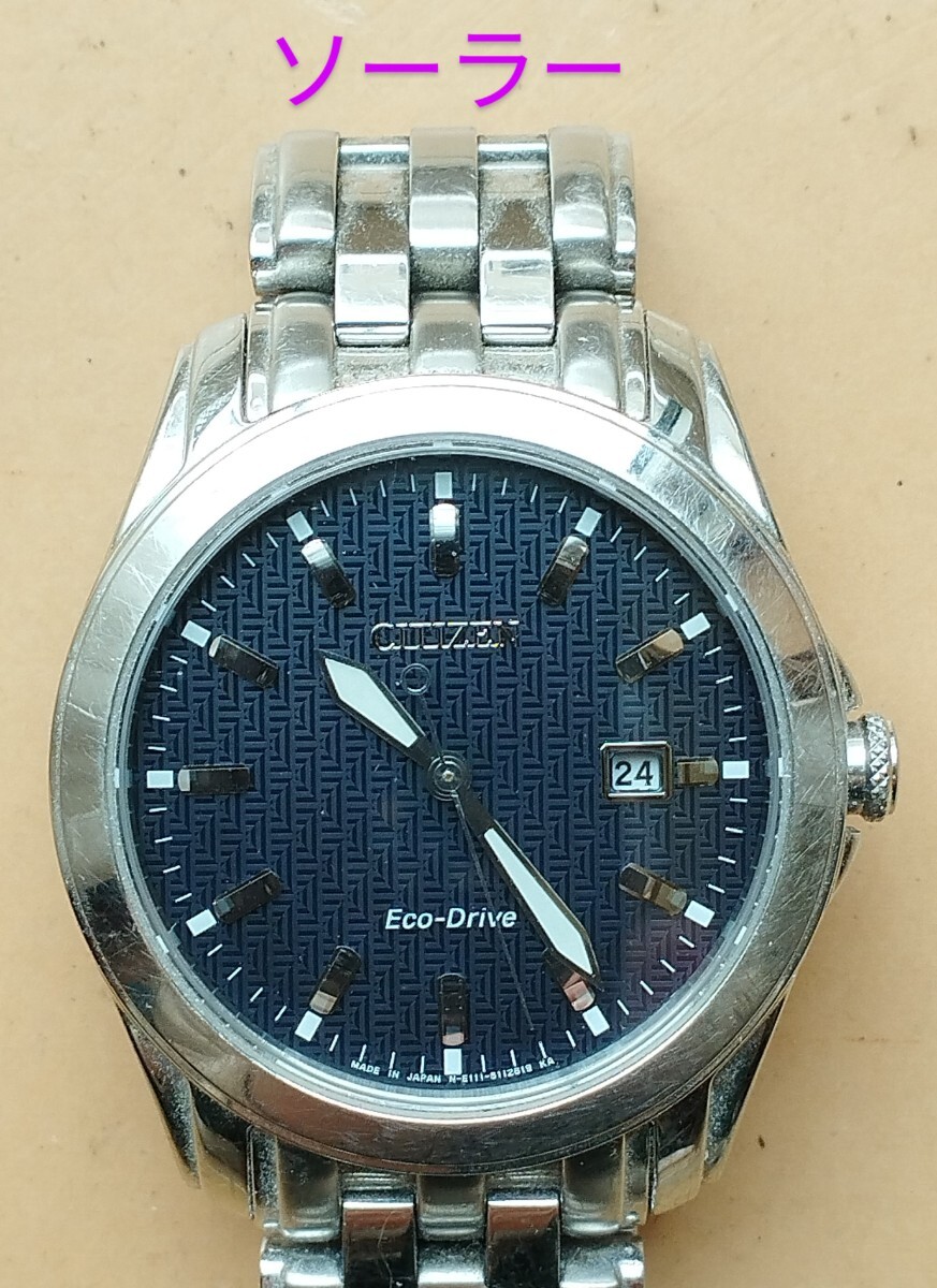 - AZ14 シチズン・エコドライブ ソーラー時計 稼働品 日付つき