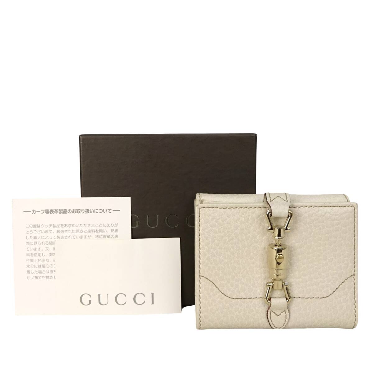 > 本物美品■グッチ■ジャッキー レザー スモールウォレット ベージュ ゴールド 141439 二つ折り財布