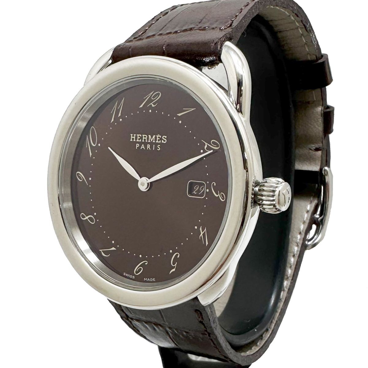 > エルメス アルソー デイト クォーツ QZ AR5.710 メンズ ブラウン文字盤 HERMES