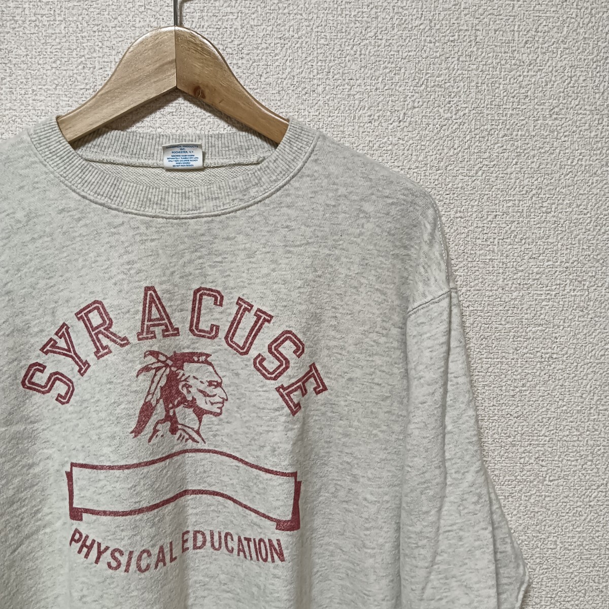 > ★Champion プルオーバー スウェットトップス トレーナー カレッジプリント オートミール メンズ sizeXL オールド チャンピオン 古着 USED