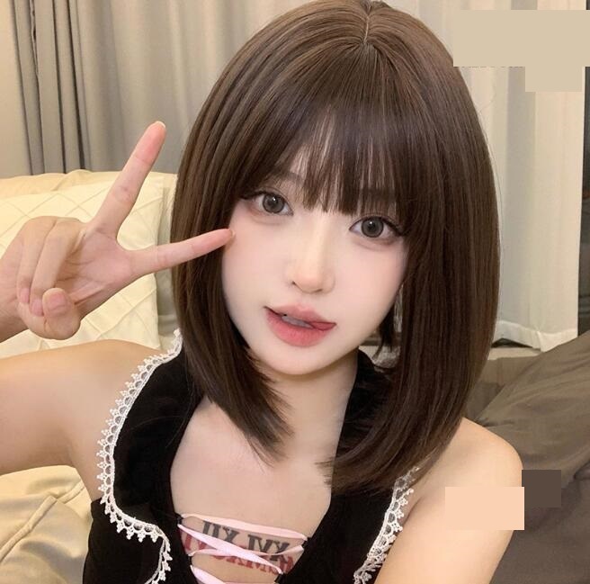 - 人気の新作!! ボブ コールドブラウン ウィッグ 自然なふわふわ感 レディーズ かつら ストレート 小顔効果 ネット付き