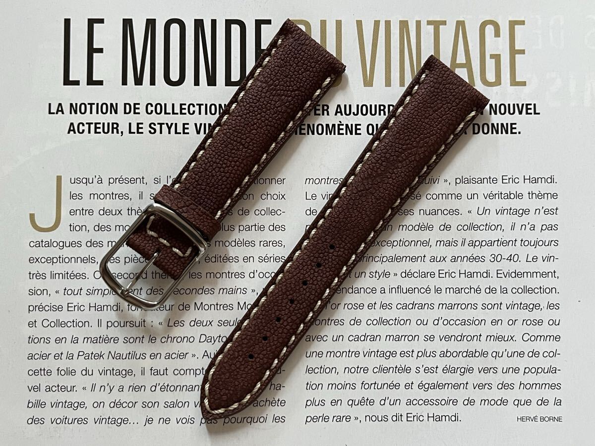 - 20mmユーロストックfromフランス レザー時計ベルト ブラウンエレファント型押し メーカー在庫未使用デッドストック品ヴィンテージA20-5