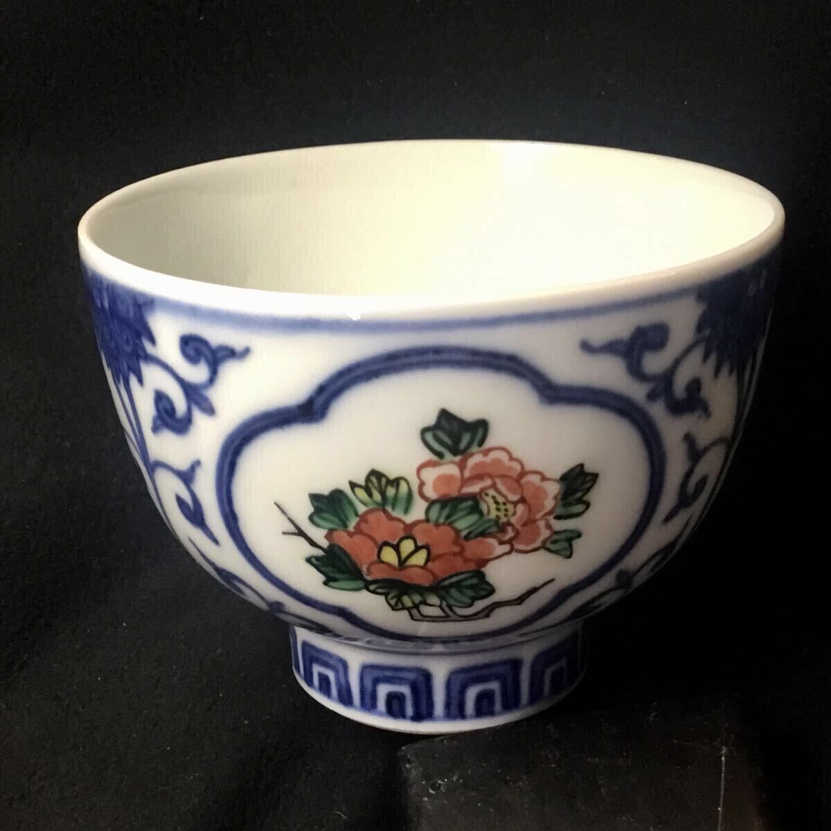 - 渋草焼 芳国舎 色絵 花文 湯呑 茶碗 煎茶道具