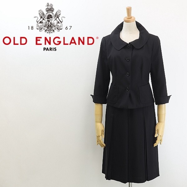 - 【HA98】◆OLD ENGLAND オールド イングランド 七分袖 ジャケット&プリーツ スカート スーツ セットアップ 黒 ブラック 36