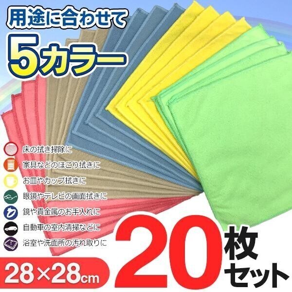 > マイクロファイバー クロス 20枚セット 洗車 掃除 28×28cm 超吸水 速乾 プロ仕様 万能 お掃除タオル 多目的 ふきん
