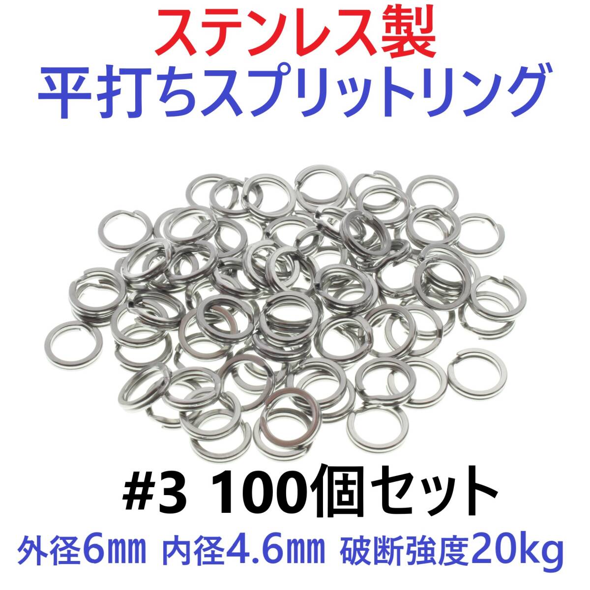 - 【送料無料】ステンレス製 平打ち スプリットリング #3 外径6mm 100個セット